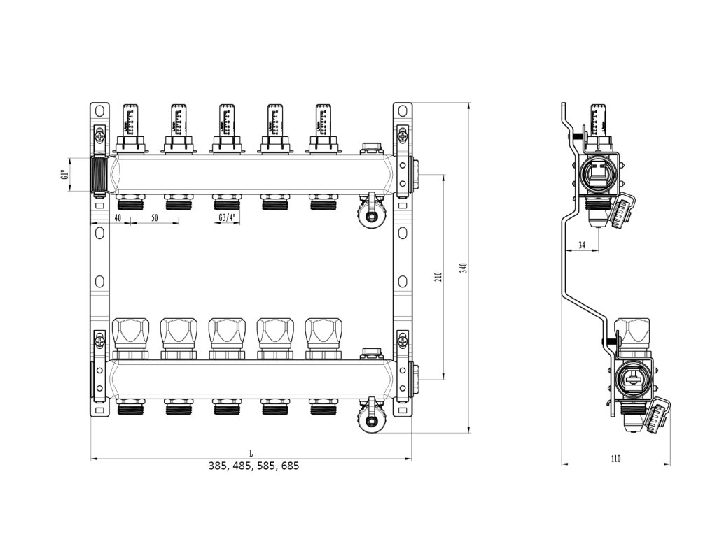 - Rozdělovač i sběrač obsahuje 1 záslepku 1“