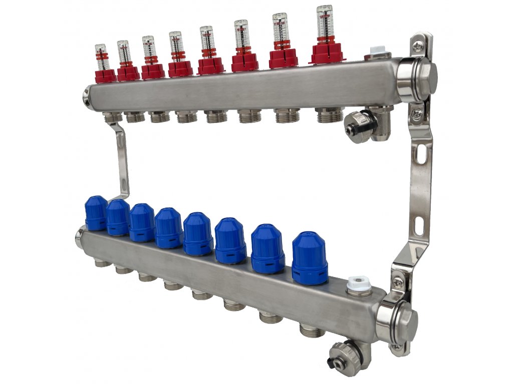 Nerezový rozdělovač 12 topných okruhů s průtokoměry ProH-12