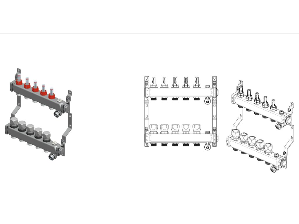 - Rozdělovač a sběrač pro připojení přívodního a vratného potrubí G 3/4“Eurokonus